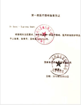 蘇州市蘇普利馬器械有限公司是專業(yè)從事醫(yī)用X射線防護系列用品、裝置、代理德國Dr.Goos-Suprema Gmbh.顧斯博士-蘇普利馬有限公司生產(chǎn)的原裝進口鉛衣及醫(yī)用觀片燈的生產(chǎn)銷售企業(yè).生產(chǎn)的X射線防護圍裙均來自美國SHIELDING公司的最新型超薄型防護材料,,具有防護性能可靠、穿戴舒適、輕便柔軟、操作自如等諸多優(yōu)點.產(chǎn)品均通過相關X射線檢測機構(gòu)的檢測,達到產(chǎn)品標準的要求.X射線醫(yī)用膠片觀察燈。是采用全LFD燈光技術。具有重量輕,光源均勻,亮度高,無頻閃,不變型,使用壽命長等特點。均取得了生產(chǎn)許可及醫(yī)查看更多>>